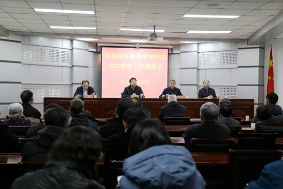 会上,院长岳修峰向离退休老同志通报了学校2020年重点工作。他指出,刚刚过去的2020年,在许昌学院的办学历史上,是不平凡的一年,是值得铭记的一年。学校坚持党建引领,强化作风建设,为各项事业发展提供了坚实的政治保障;坚持师生生命安全至上,统筹推进疫情防控和学校事业发展,推动内部治理能力水平不断提升,教育教学改革持续深化,学科建设、科技创新和社会服务成效显著,全面加强人才队伍建设,持续推动对外合作交流;坚持以人为本发展理念,持续推动办学条件不断改善,学校保障能力不断提升,改善民生工作持续加强,广大师生获得感、幸福感不断提升。