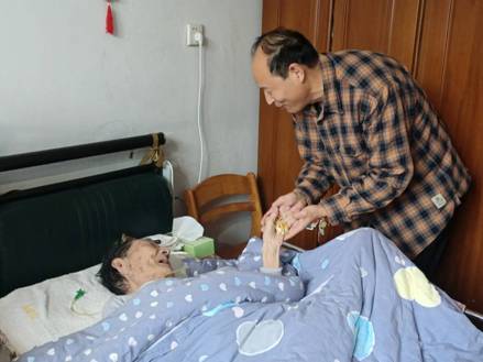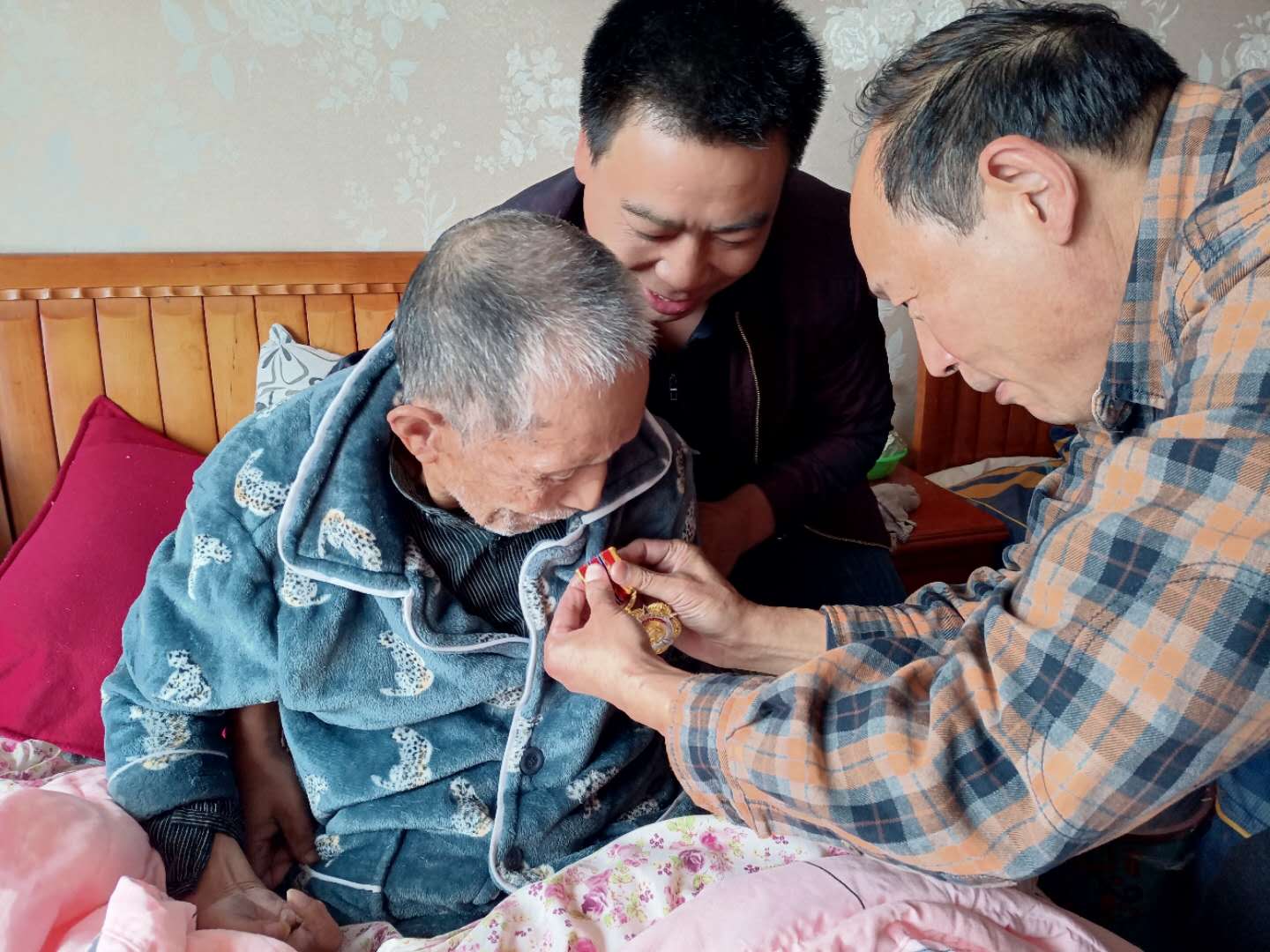 我校获颁纪念章的有丁合生、张永海两位老同志,70年前他们肩负着祖国和人民的重托,远离故土,捍卫世界和平、反抗侵略。现在两位老同志均已卧病在床多年,离退休工作处张明俊副处长一行分别来到两位老同志家中,关切地询问了老人的身体状况和生活起居情况,对他们在战争年代不怕牺牲的精神表示崇高的敬意和衷心的感谢,并为他们戴上由中共中央、国务院、中央军委颁发的“中国人民志愿军抗美援朝出国作战70周年”纪念章。