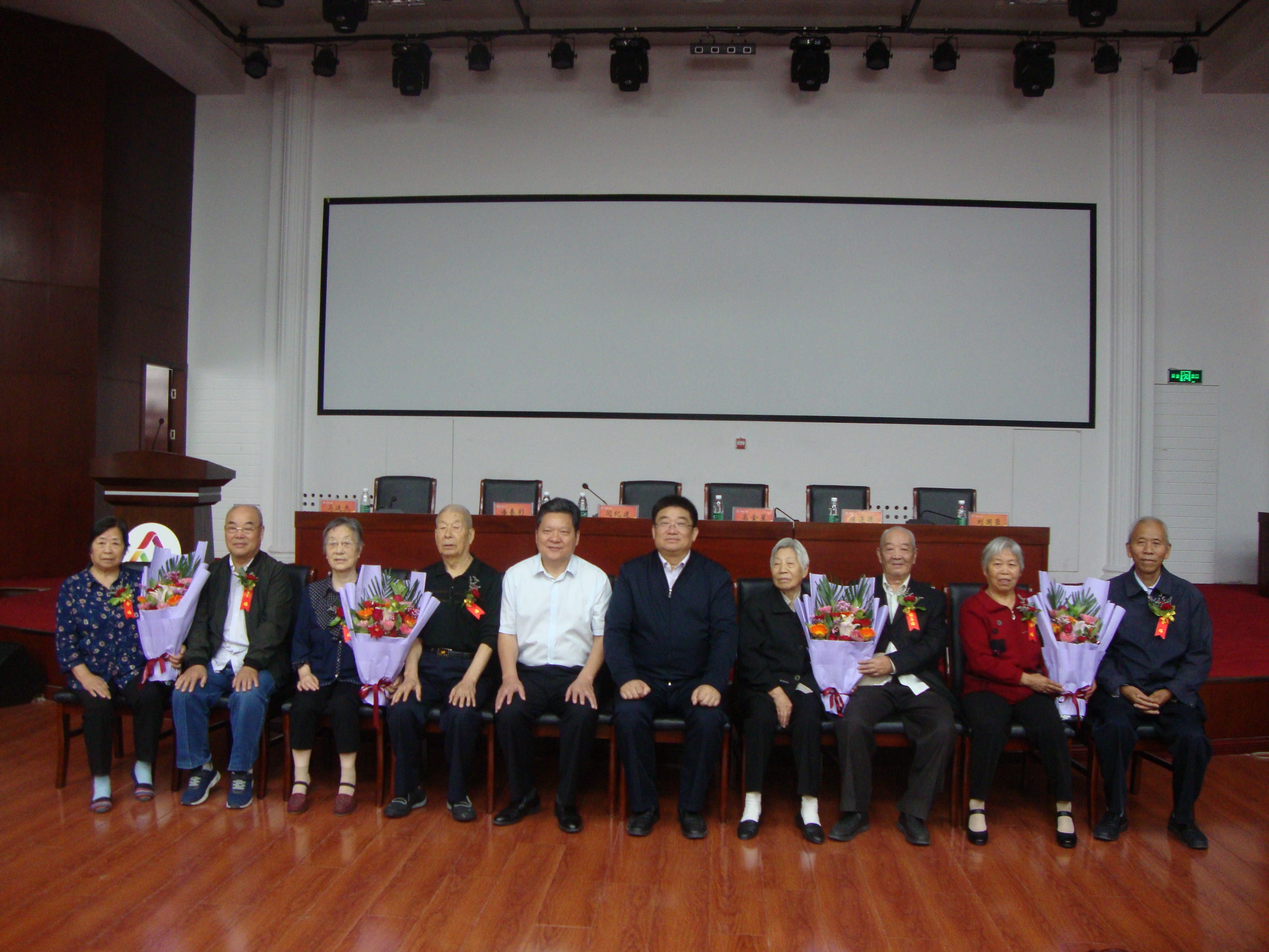 庆典仪式上,校工会主席高金星代表全校教职工致辞,组织部长陈遂德宣读了金婚、钻石婚伉俪名单,离退休老同志和金婚钻石婚伉俪代表徐玉茂作了发言,校领导向金婚、钻石婚伉俪敬献了鲜花。