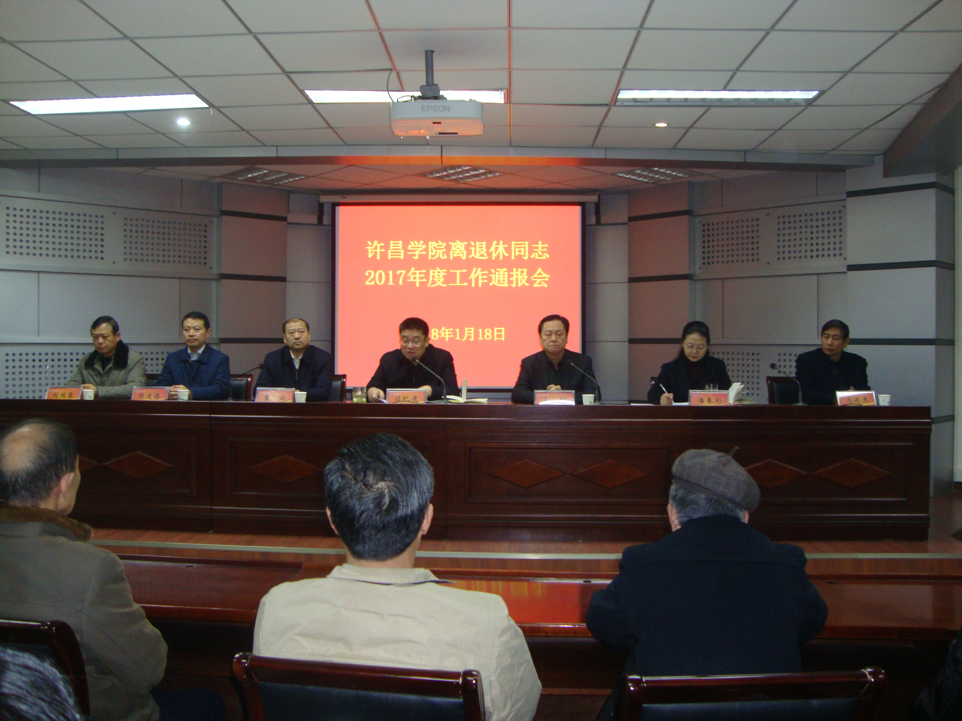 1月18日上午,我校离退休老同志2017年度工作通报会在第三会议室举行。学校党委书记闫纪建、党委副书记马超、副院长崔斌出席通报会。党政办公室、组织部、离退休工作处负责同志和110余名离退休老同志代表参加通报会。党委书记闫纪建代表学校党委向离退休老同志通报2017年度工作。通报会由党委副书记马超主持。
